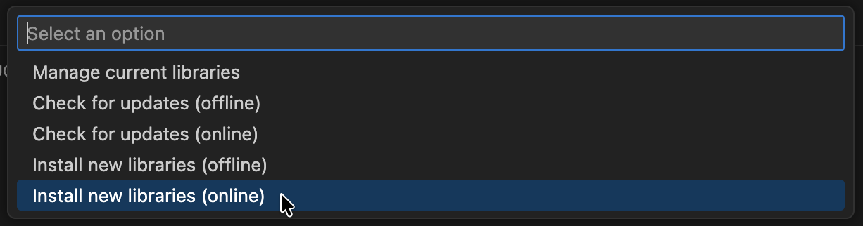 - Select Install new libraries (online).